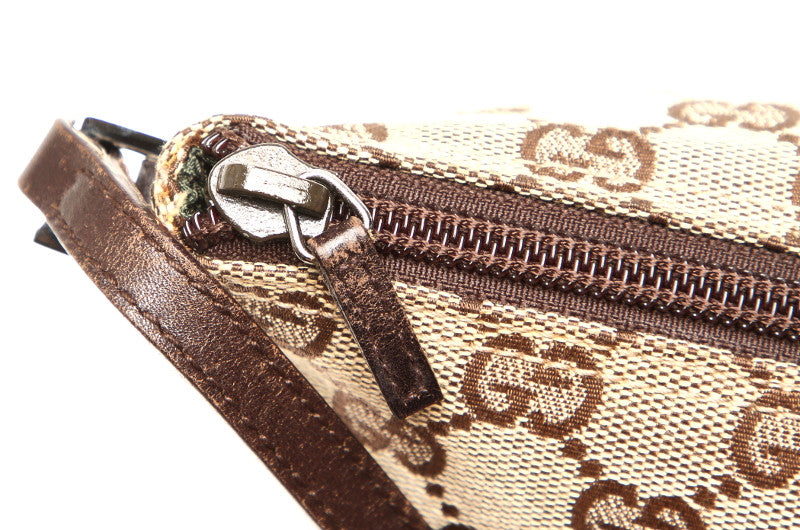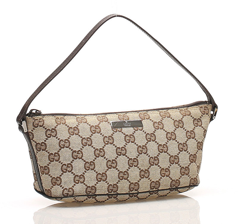 グッチ GGキャンバス 07198 ブラウン キャンバス レザー ポーチ レディース GUCCI 中古