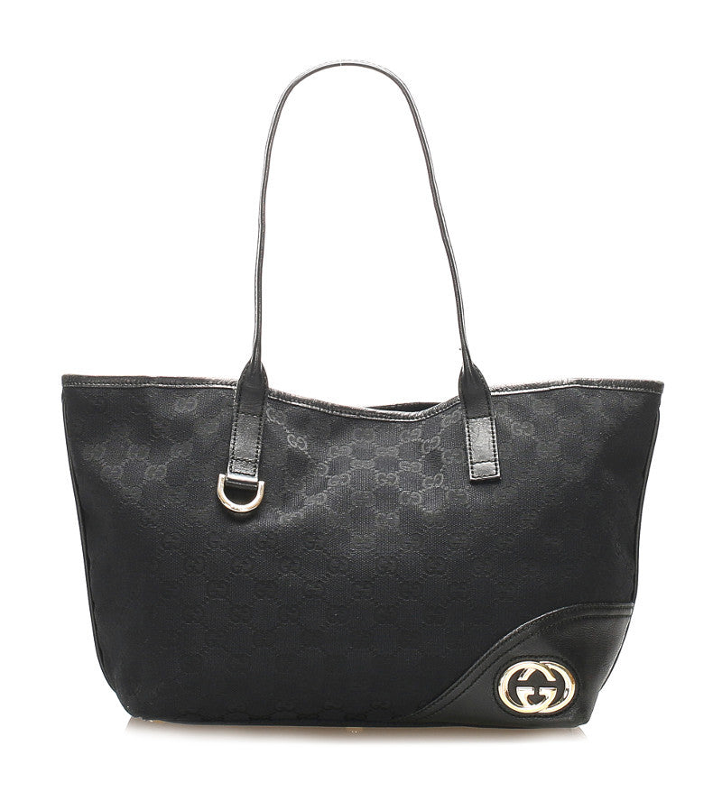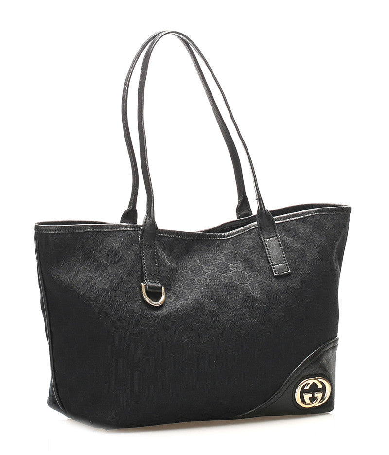 グッチ GGキャンバス 169946 ブラック キャンバス レザー トートバッグ レディース GUCCI 中古
