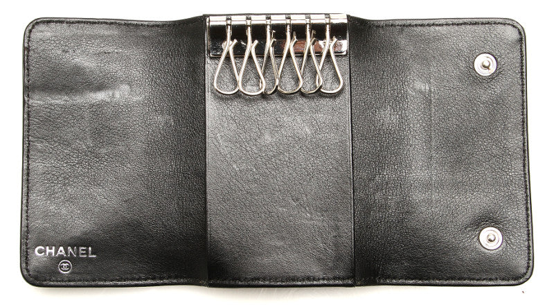 シャネル カメリア ブラック エナメル キーケース レディース CHANEL 中古