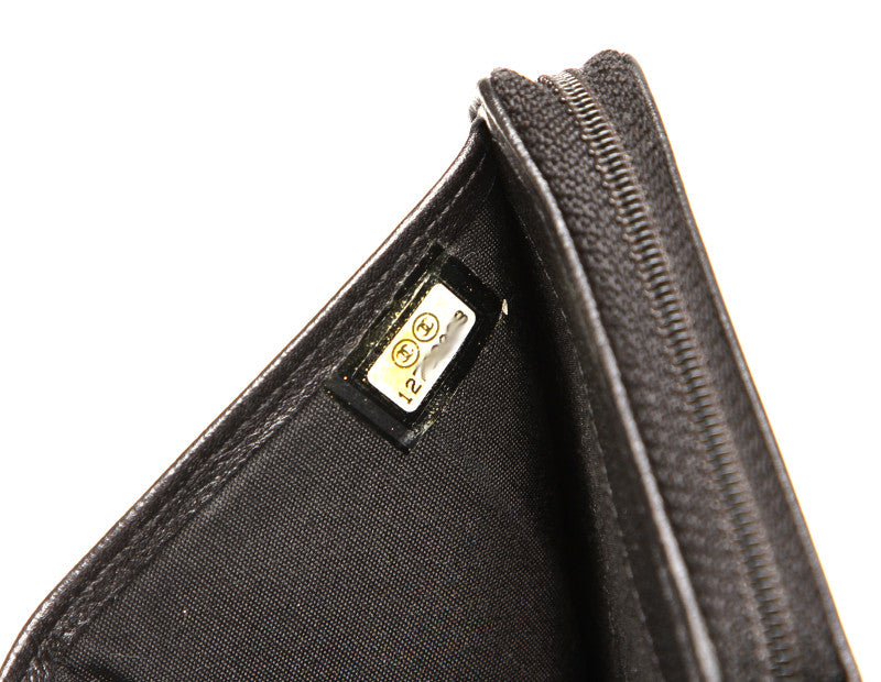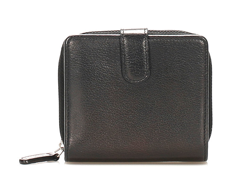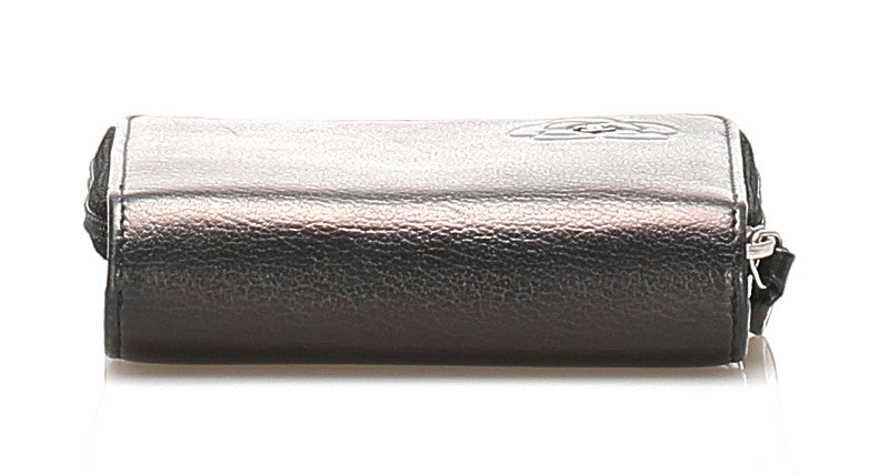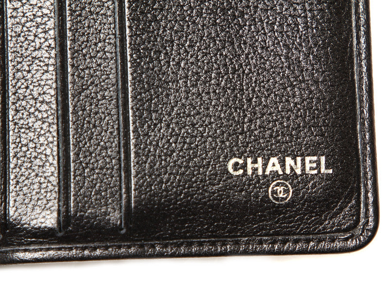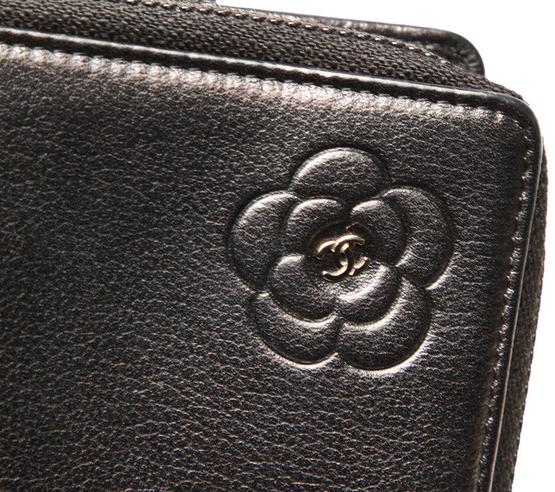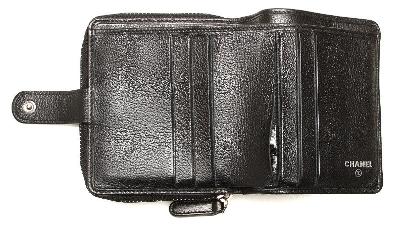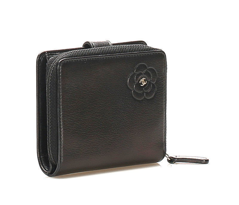 シャネル カメリア ブラック レザー 二つ折り財布 レディース CHANEL 中古