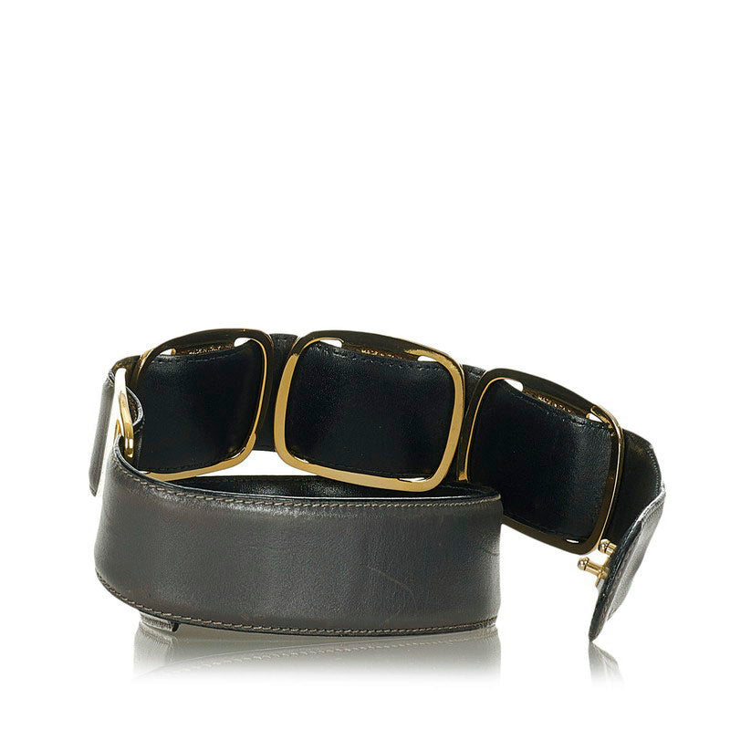 サルヴァトーレフェラガモ ダークグレー ゴールド レザー ベルト レディース Salvatore Ferragamo 【中古】