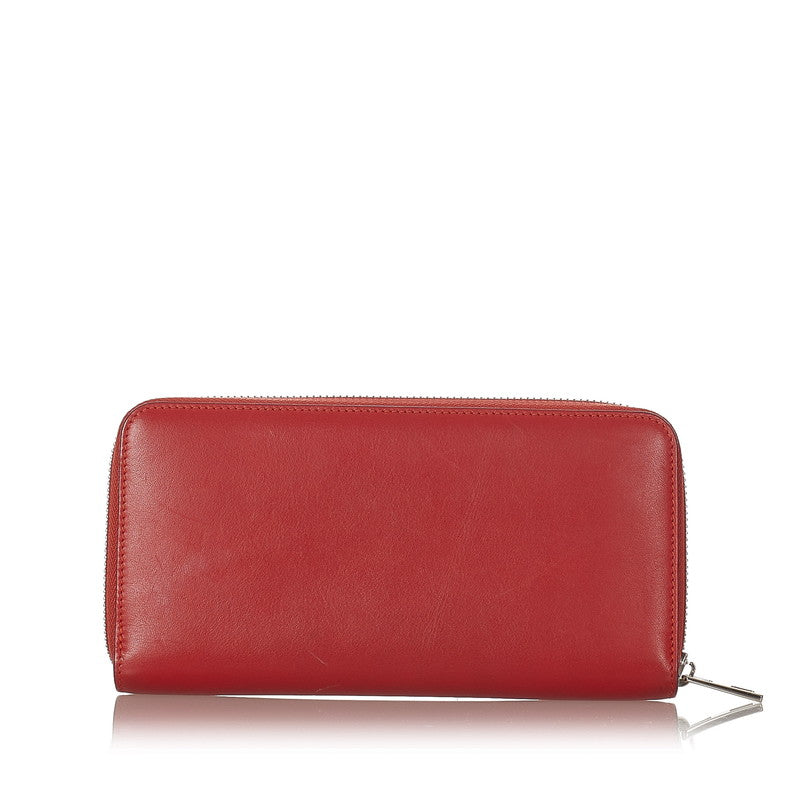 ロエベ アナグラム レッド レザー ラウンドファスナー 長財布 レディース LOEWE 【中古】