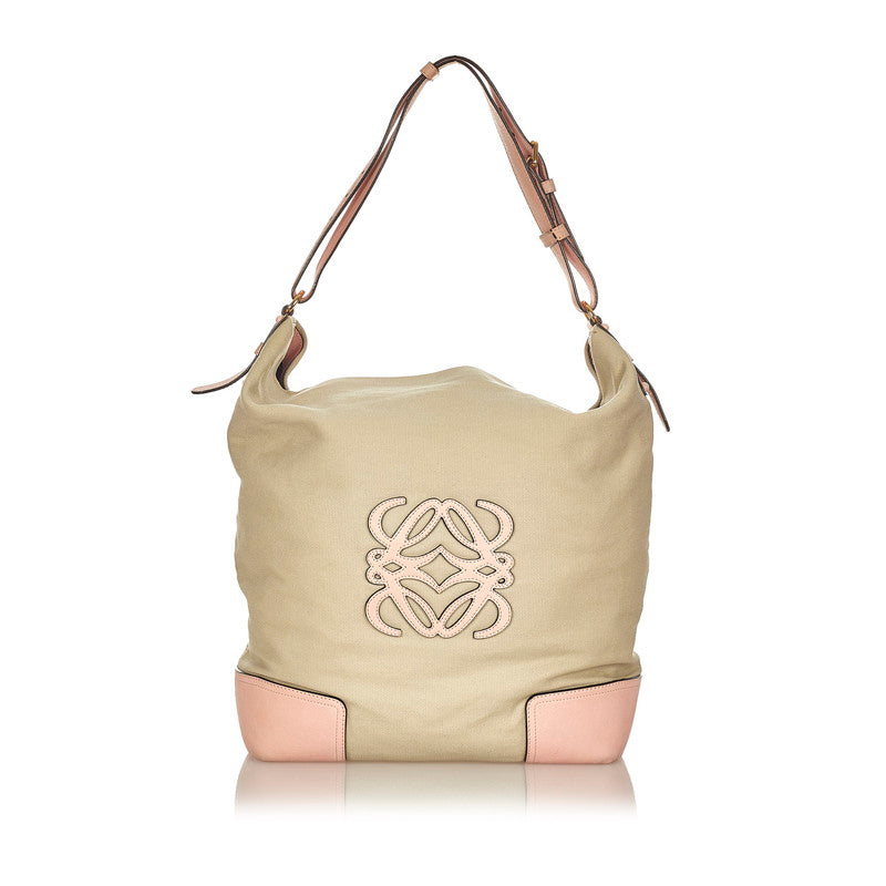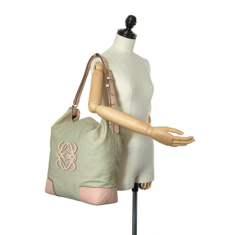 ロエベ アナグラム ベージュ ライトピンク キャンバス レザー ショルダーバッグ レディース LOEWE 【中古】