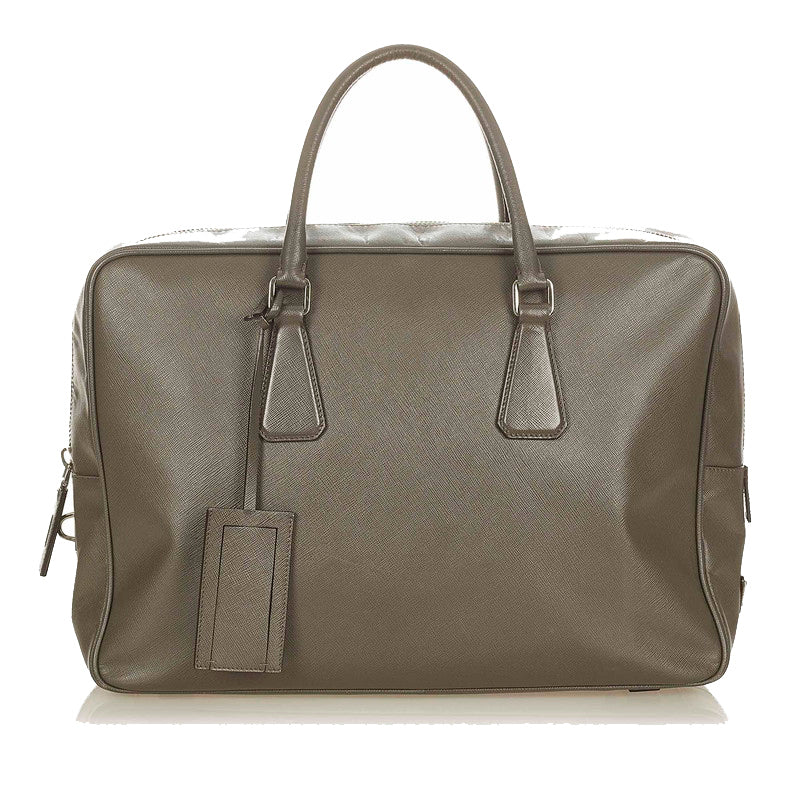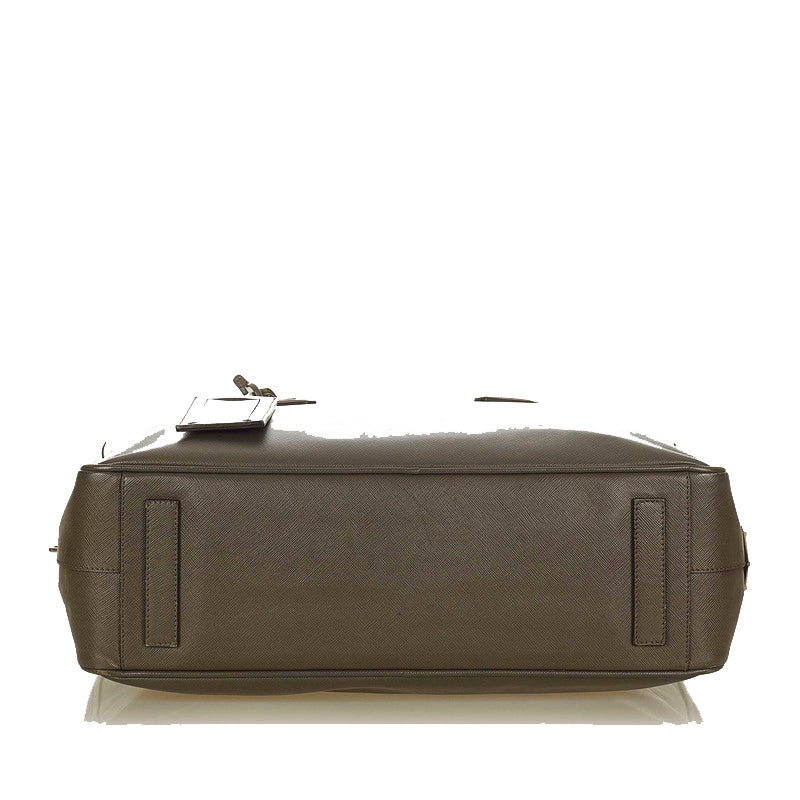 プラダ サフィアーノ グレー カーフ ビジネスバッグ メンズ PRADA 【中古】