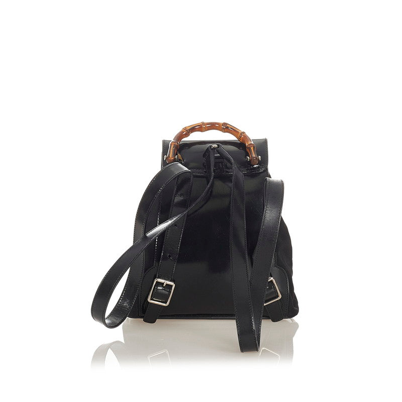 グッチ バンブー 003 2058 ブラック ナイロン エナメル リュック バックパック レディース GUCCI 【中古】