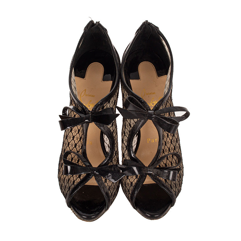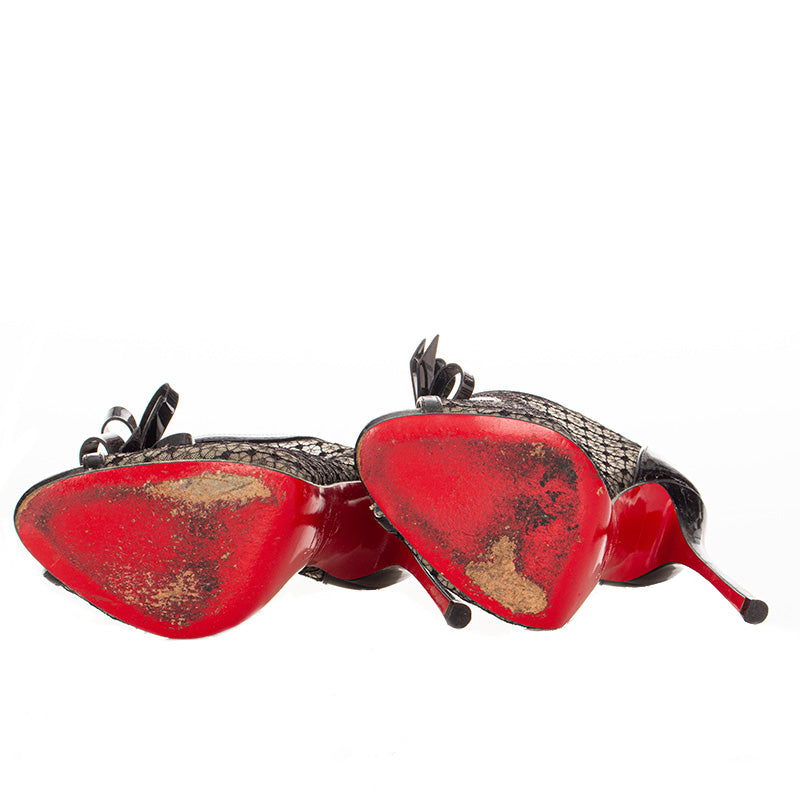 クリスチャンルブタン 2連リボン パンプス ブラック エナメル レース レディース Christian Louboutin 【中古】