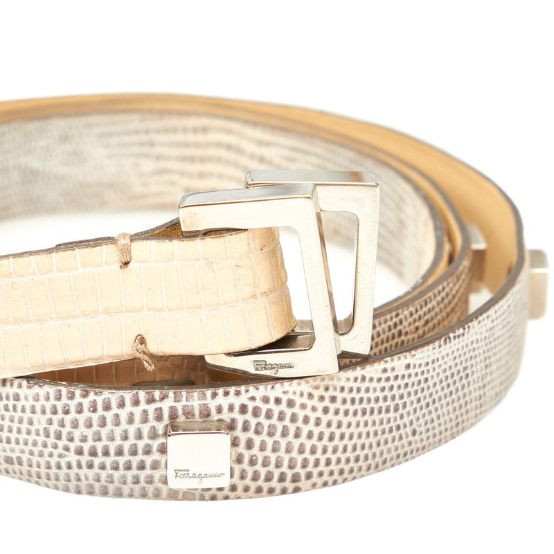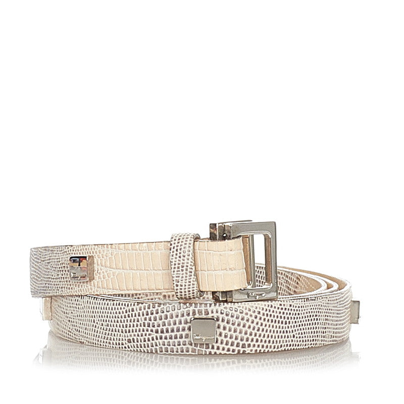 サルヴァトーレフェラガモ ベルト アイボリー グレー 型押し レディース Salvatore Ferragamo 【中古】