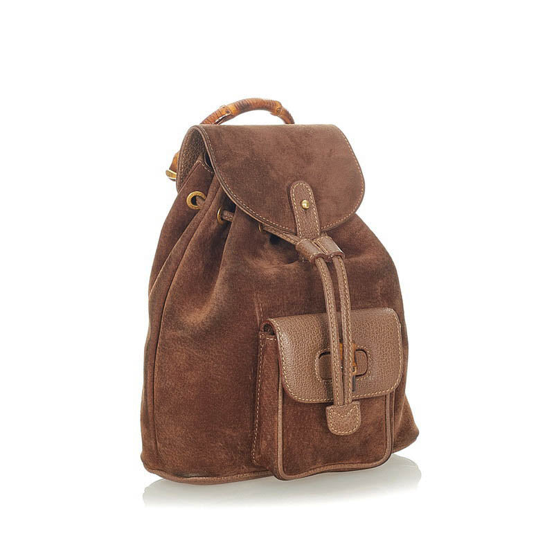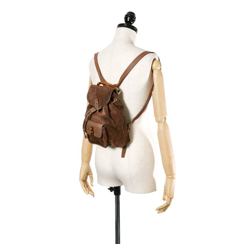 グッチ バンブー 003 17050 ブラウン スウェード レザー リュック バックパック レディース GUCCI 【中古】