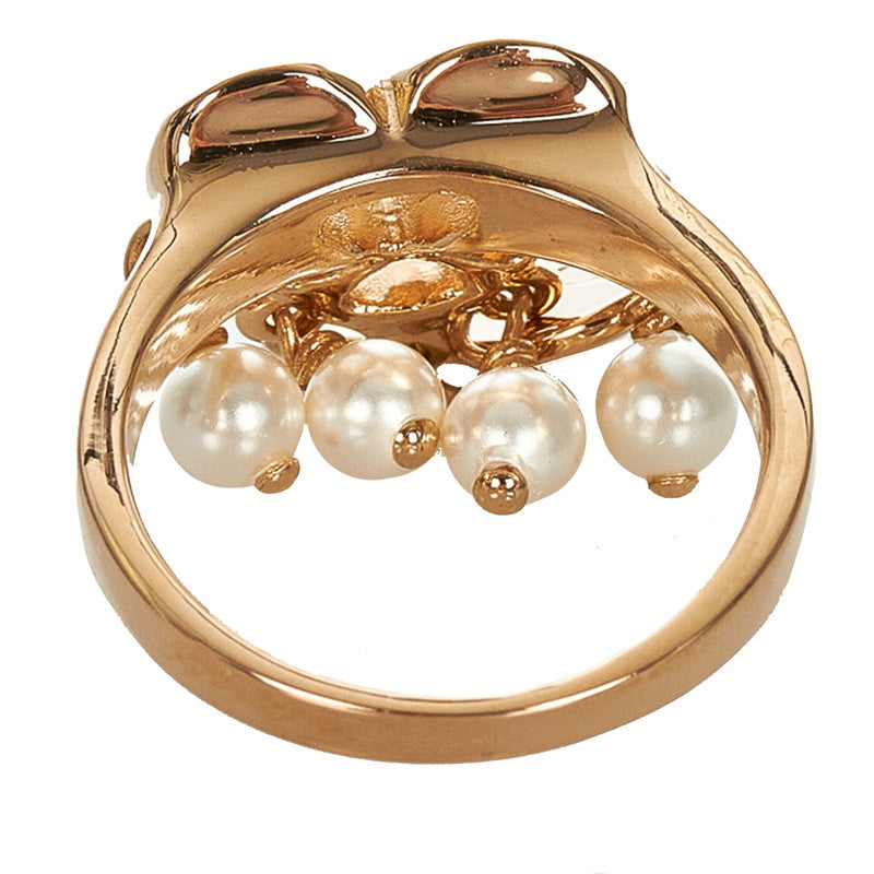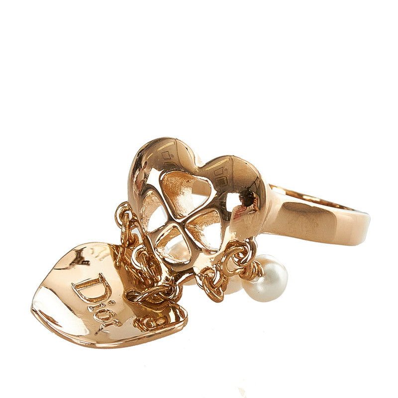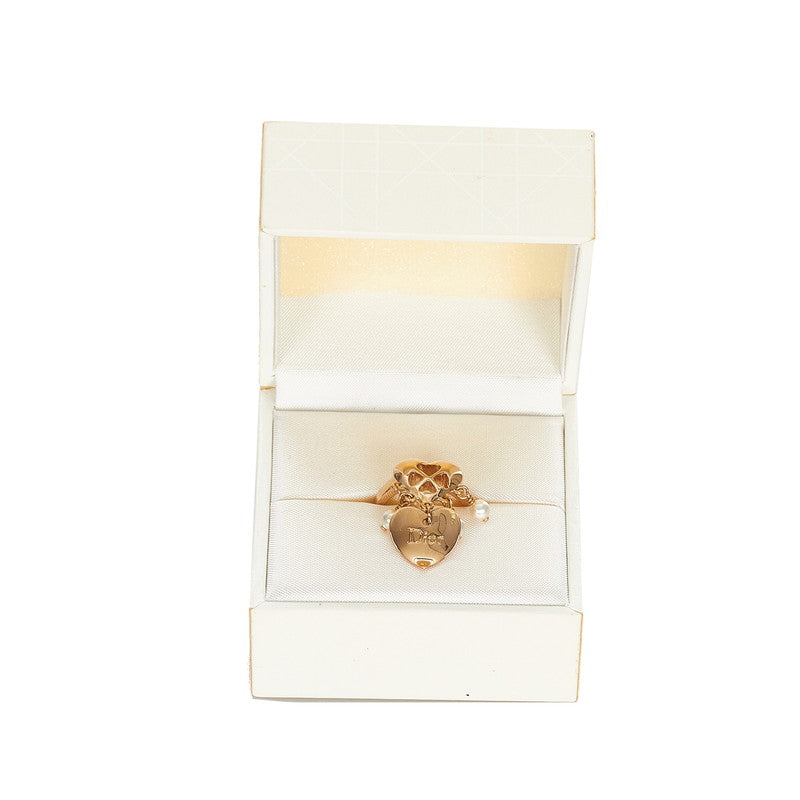 クリスチャンディオール ゴールド ホワイト メッキ フェイクパール ハート ロゴデザイン リング 指輪 レディース Christian Dior 14号 【中古】