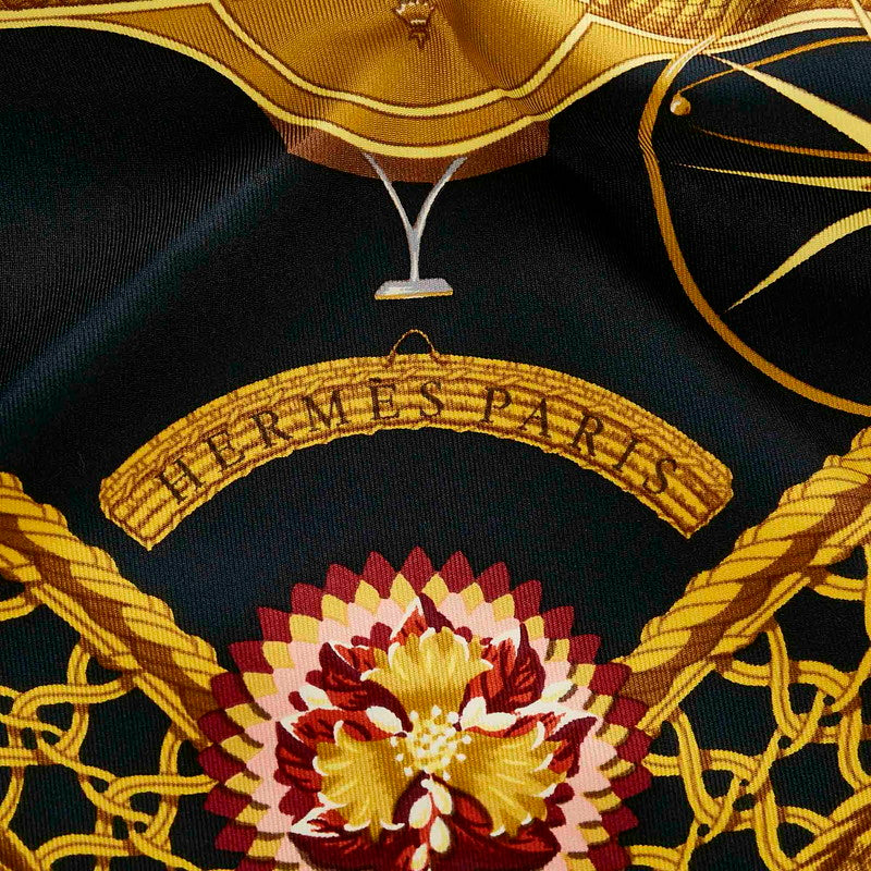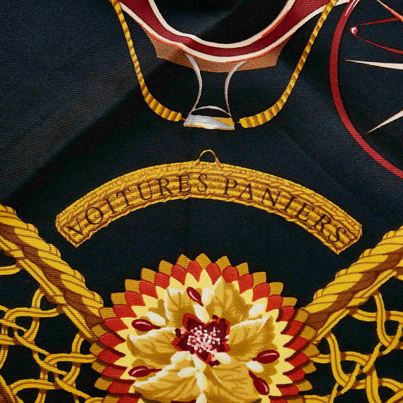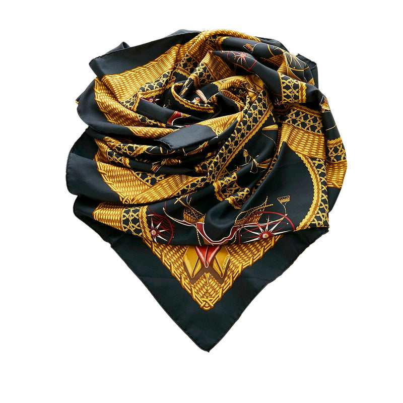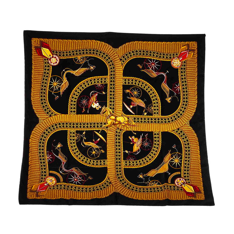 エルメス カレ90 VOITURES PANIERS 馬車 ブラック マルチ シルク スカーフ レディース HERMES 【中古】