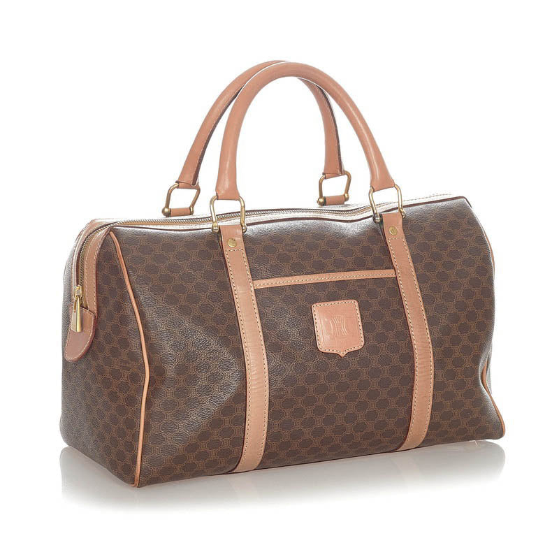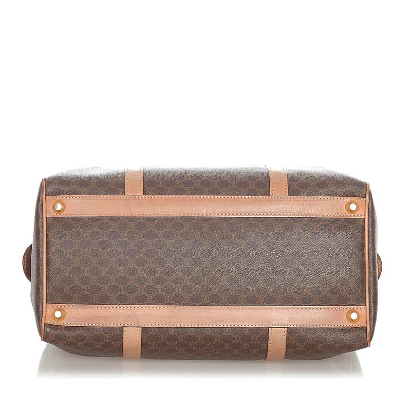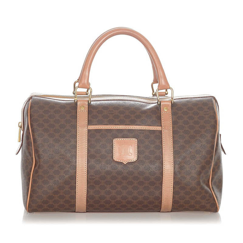 セリーヌ マカダム ダークブラウン PVC レザー ハンドバッグ ミニボストン レディース CELINE 【中古】