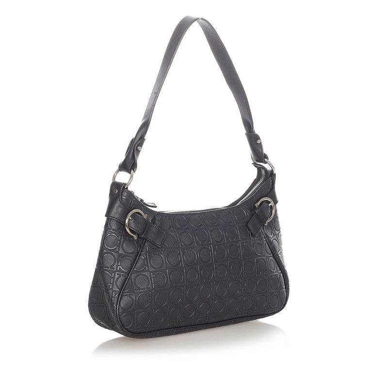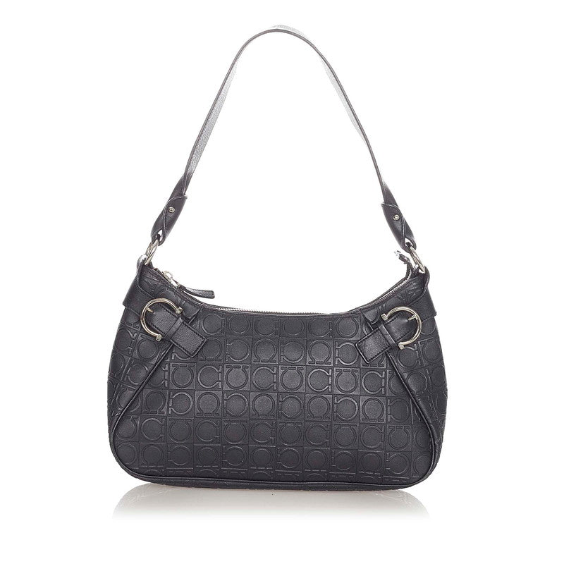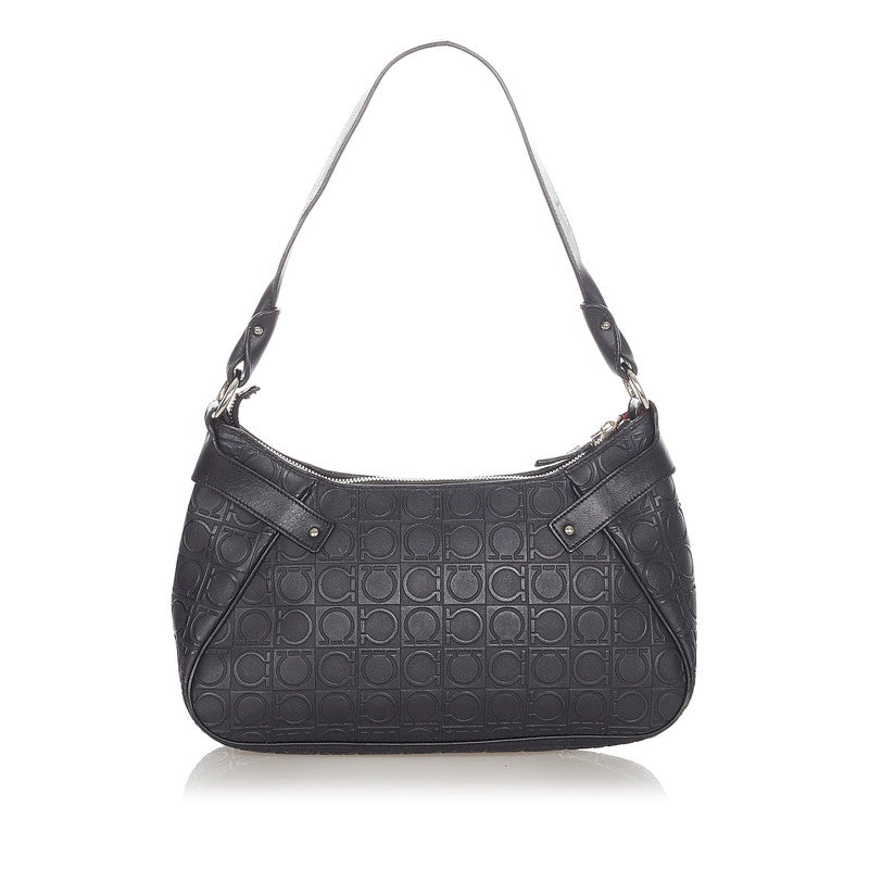 サルヴァトーレフェラガモ ガンチーニ AU-21 4436 ブラック レザー ショルダーバッグ レディース Salvatore Ferragamo 【中古】