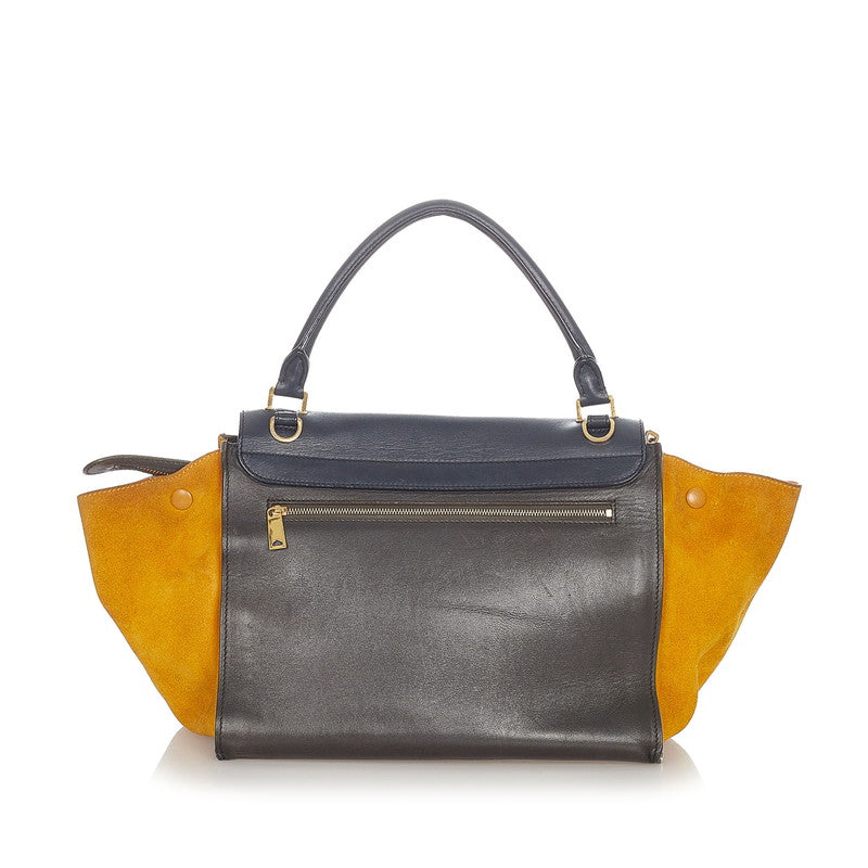 セリーヌ トラペーズ マスタード レザー スウェード ハンドバッグ ショルダーバッグ 2WAY レディース CELINE 【中古】