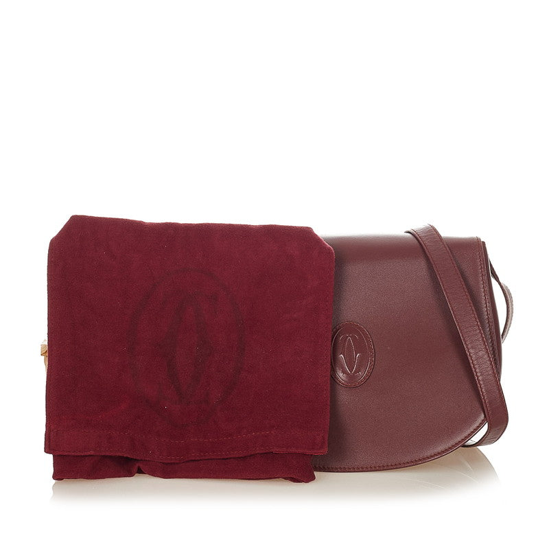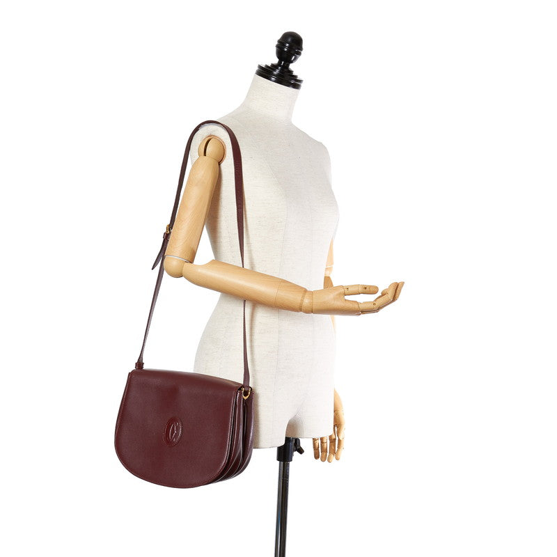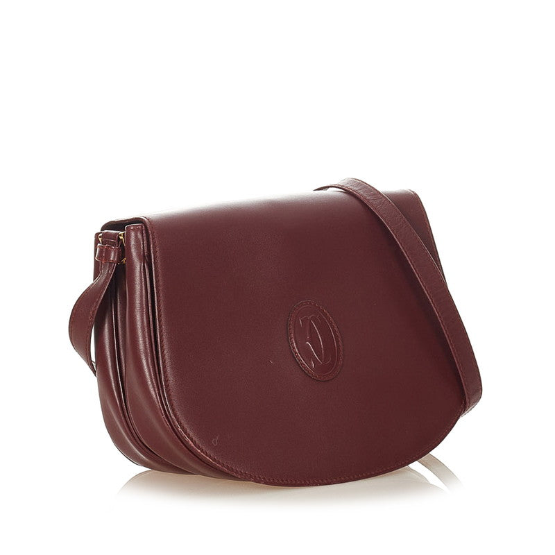 カルティエ マストライン ボルドー レザー 斜め掛け ショルダーバッグ レディース CARTIER 【中古】