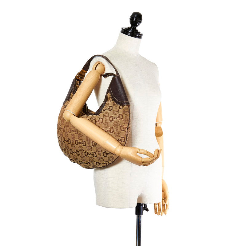 グッチ ホースビット 145764 ベージュ ブラウン キャンバス レザー ショルダーバッグ レディース GUCCI 【中古】