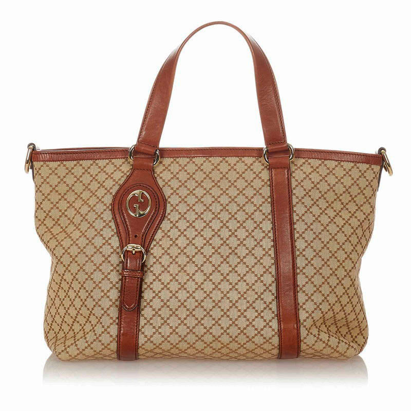グッチ ディアマンテ 282346 ベージュ ブラウン キャンバス レザー ハンドバッグ ショルダーバッグ 2WAY レディース GUCCI 【中古】