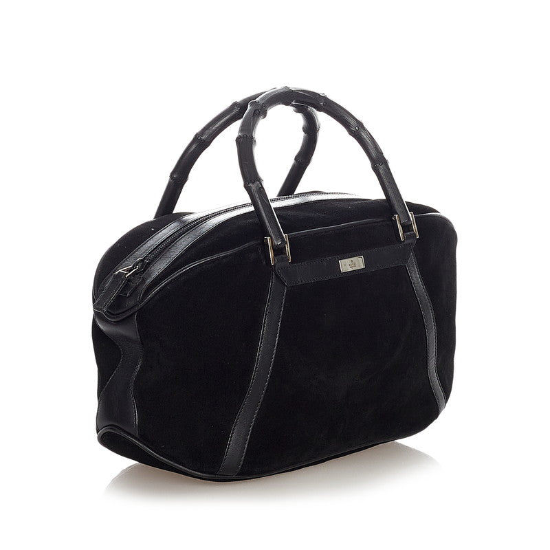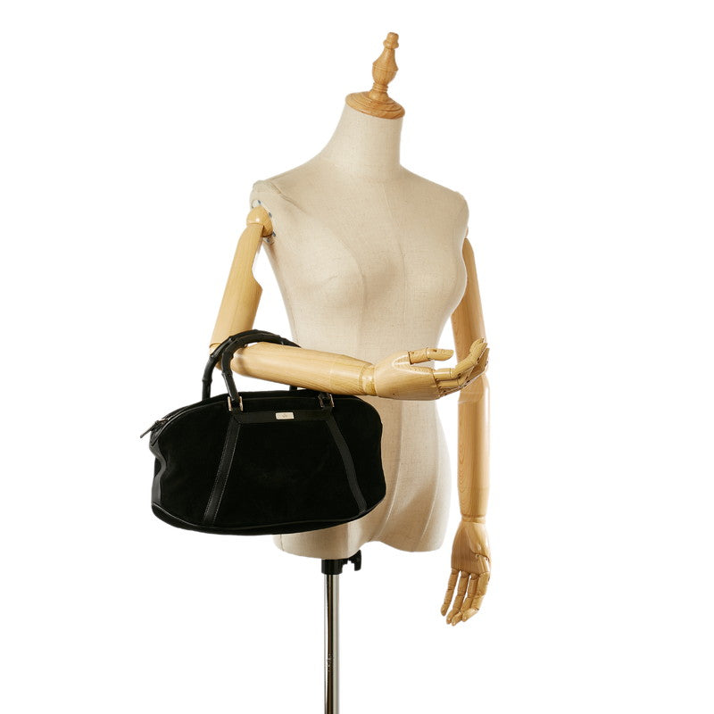 グッチ バンブー 002 1084 ブラック スウェード ハンドバッグ レディース GUCCI 【中古】