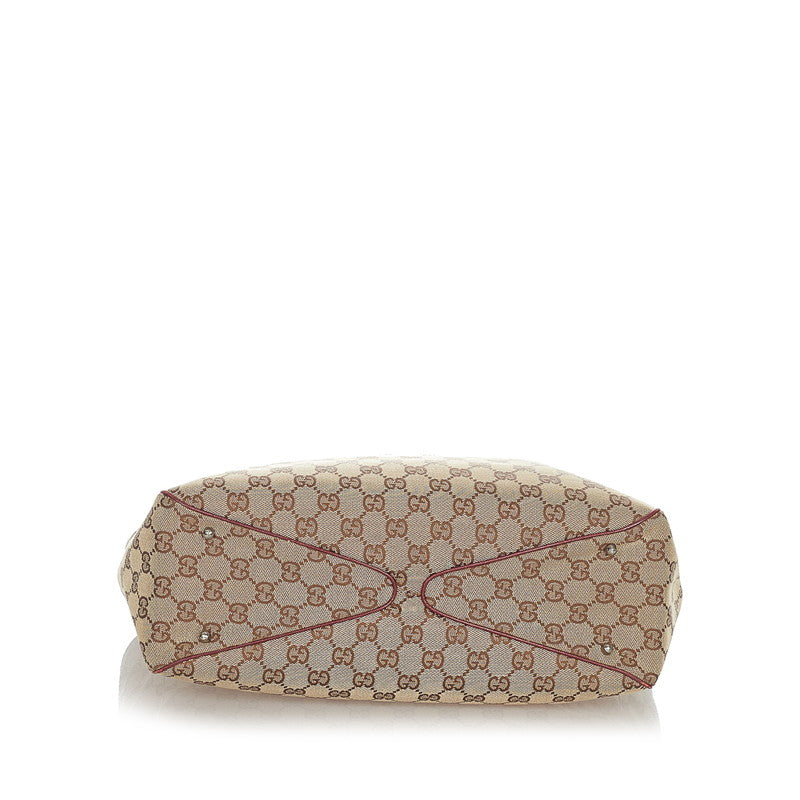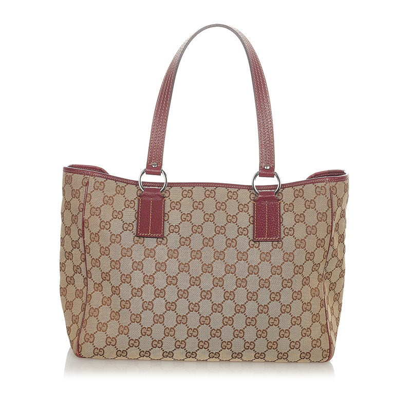 グッチ GGキャンバス ベージュ レッド キャンバス レザー トートバッグ レディース GUCCI 【中古】