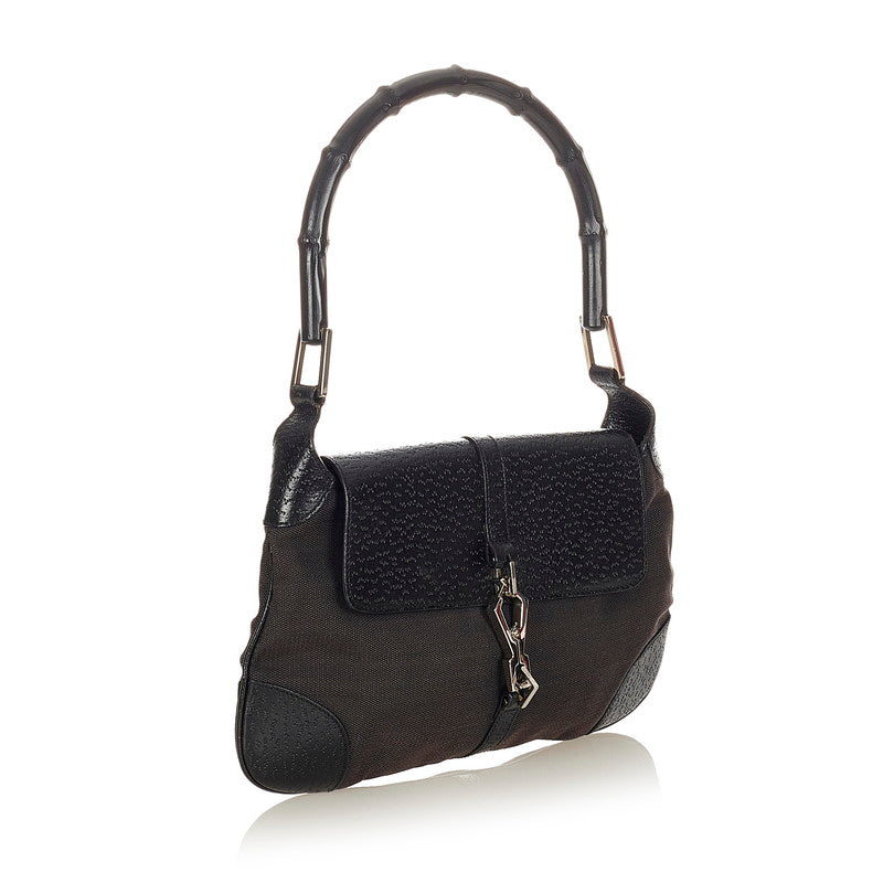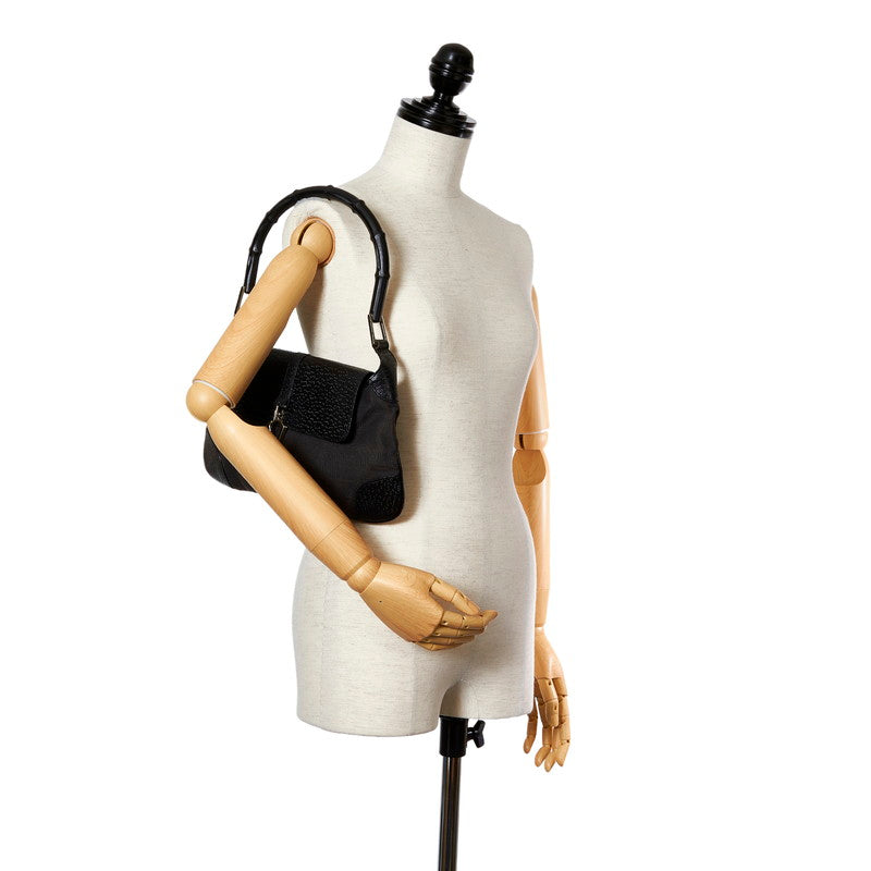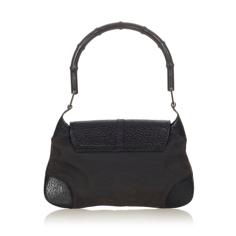 グッチ バンブー 001 4096 1705 ブラック キャンバス レザー ショルダーバッグ レディース GUCCI 【中古】