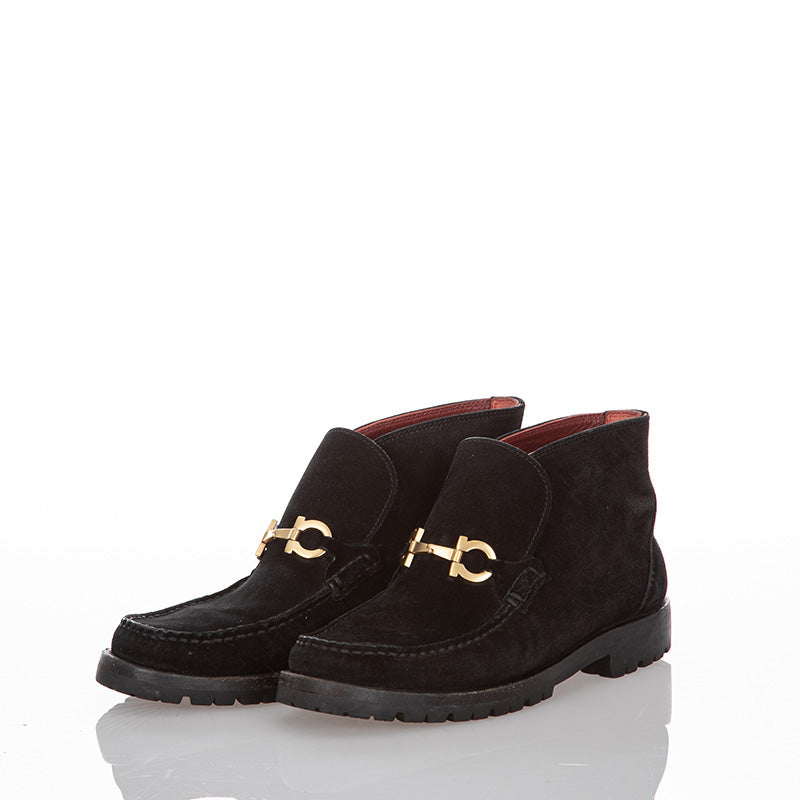サルヴァトーレフェラガモ ガンチーニ ブラック スウェード ブーツ レディース Salvatore Ferragamo 【中古】