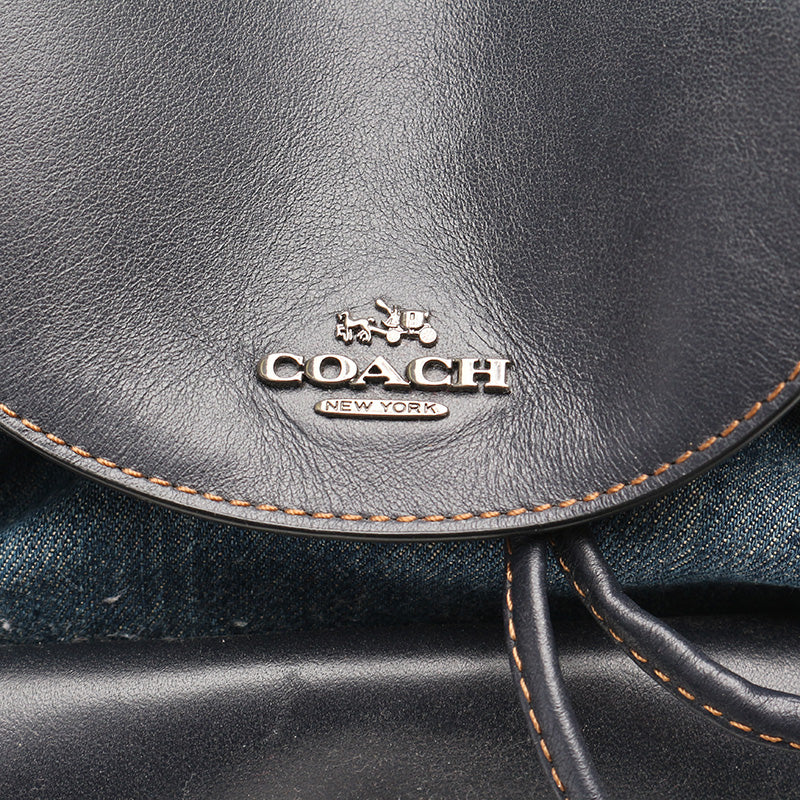 コーチ フラワー F57547 ネイビーブラック デニム レザー リュック バックパック レディース COACH 【中古】