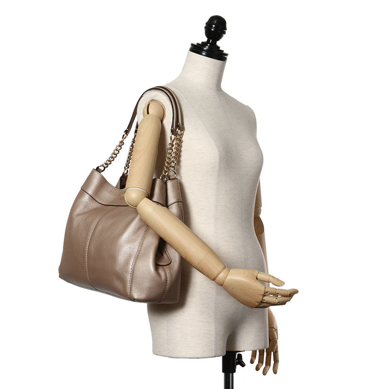 コーチ ベージュ レザー チェーン ショルダーバッグ レディース COACH 【中古】
