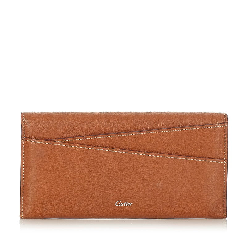 カルティエ マストC ブラウン ゴートスキン 長財布 レディース CARTIER 【中古】