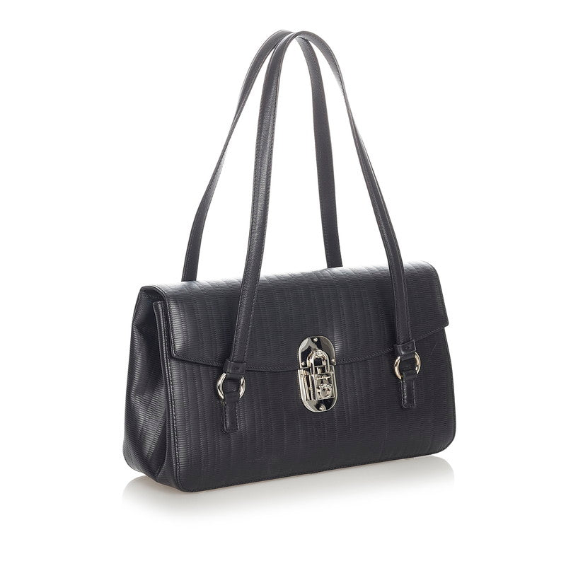 サルヴァトーレフェラガモ ガンチーニ AU-21/4363 ブラック レザー ショルダーバッグ レディース Salvatore Ferragamo 【中古】