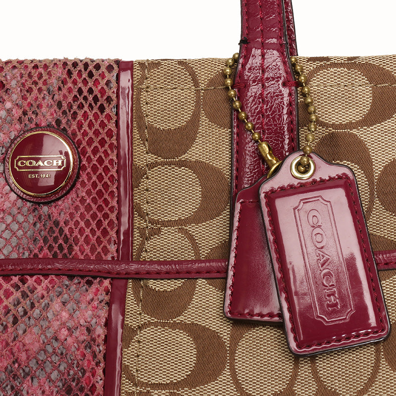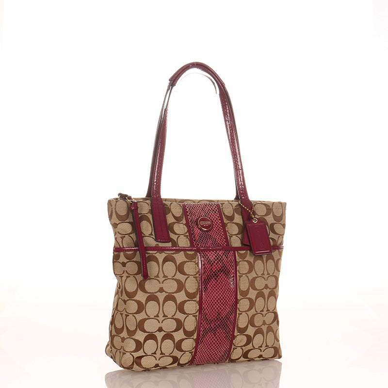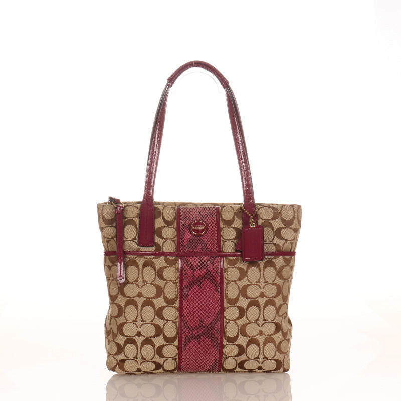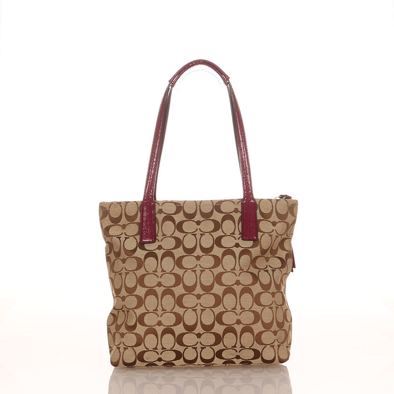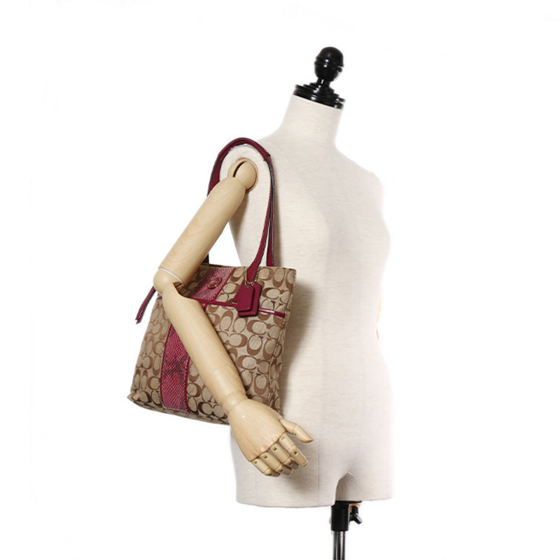 コーチ シグネチャー F25706 ベージュ キャンバス レザー トートバッグ レディース COACH 【中古】