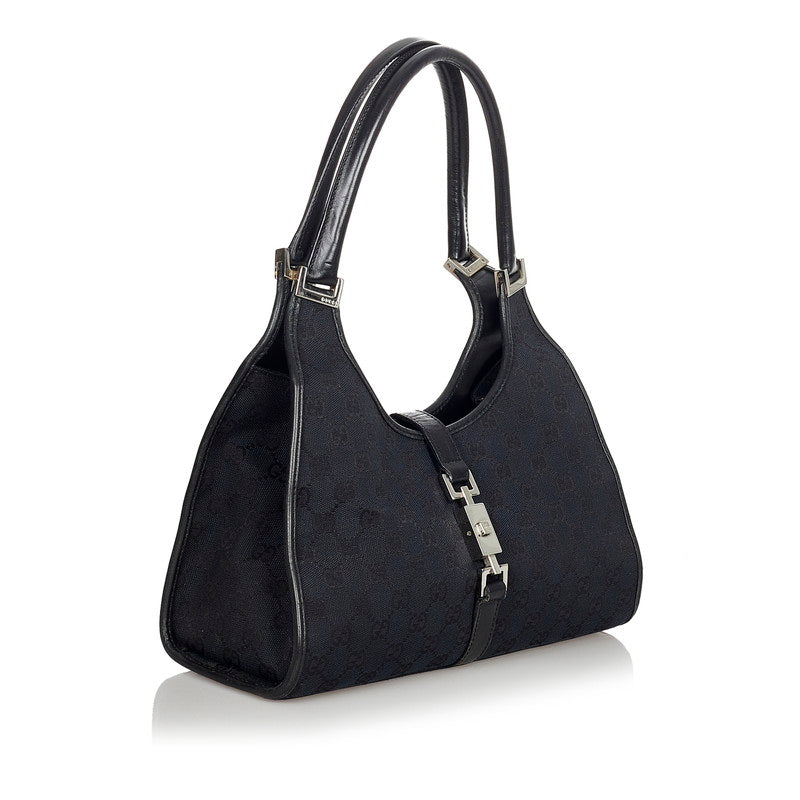 グッチ ジャッキー GGキャンバス 002 1067 ブラック キャンバス レザー ショルダーバッグ レディース GUCCI 【中古】