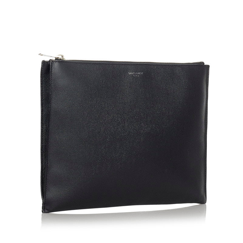 サンローラン ブラック レザー クラッチバッグ レディース SAINT LAURENT 【中古】