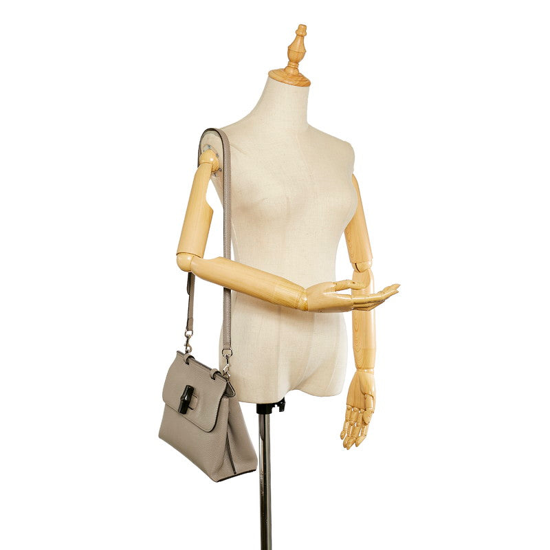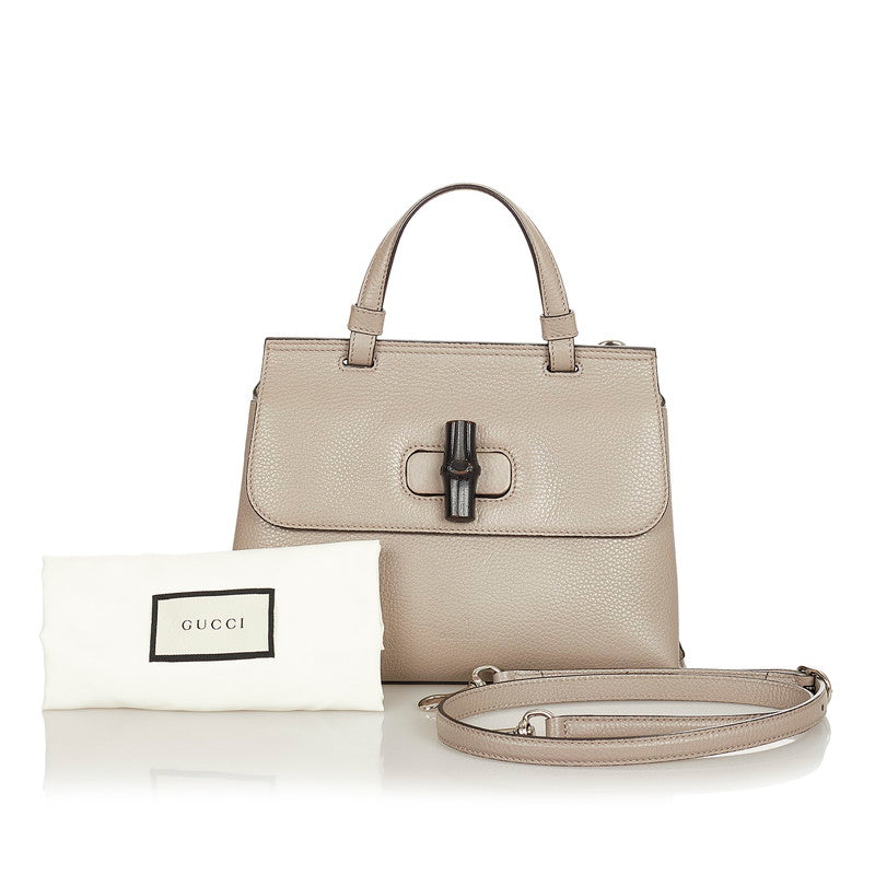 グッチ バンブー デイリー グレー レザー ハンドバッグ ショルダーバッグ 2WAY レディース GUCCI 【中古】