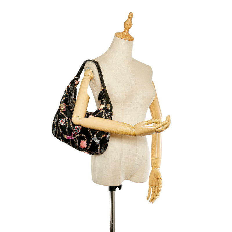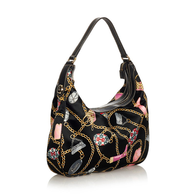 グッチ チャーム柄 153010 ブラック マルチカラー サテン レザー ワンショルダー レディース GUCCI 【中古】