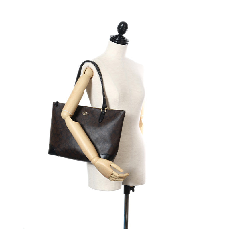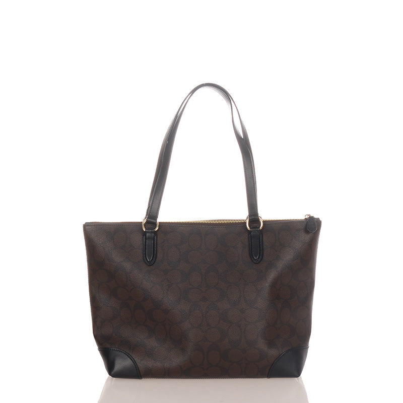 コーチ シグネチャー F29208 ブラウン ブラック PVC レザー ハンドバッグ レディース COACH 【中古】