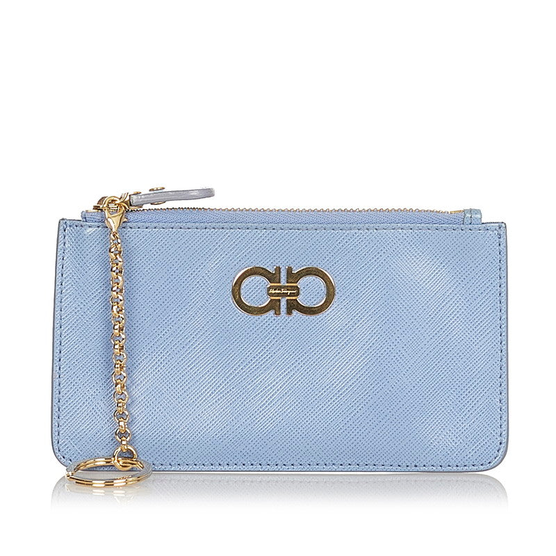 サルヴァトーレフェラガモ ガンチーニ コインケース KY-22 B956 ブルー レザー レディース Salvatore Ferragamo 【中古】