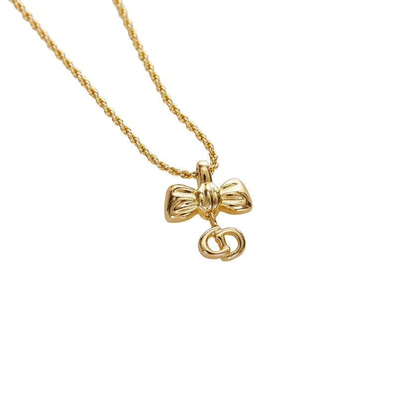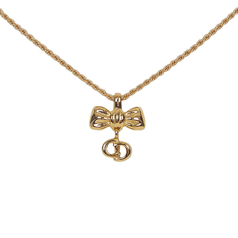 クリスチャンディオール ゴールド メッキ キュービック・ジルコニア リボンモチーフ・ ロゴモチーフ ネックレス2点 ブレス1点セット ネックレス レディース Christian Dior 【中古】