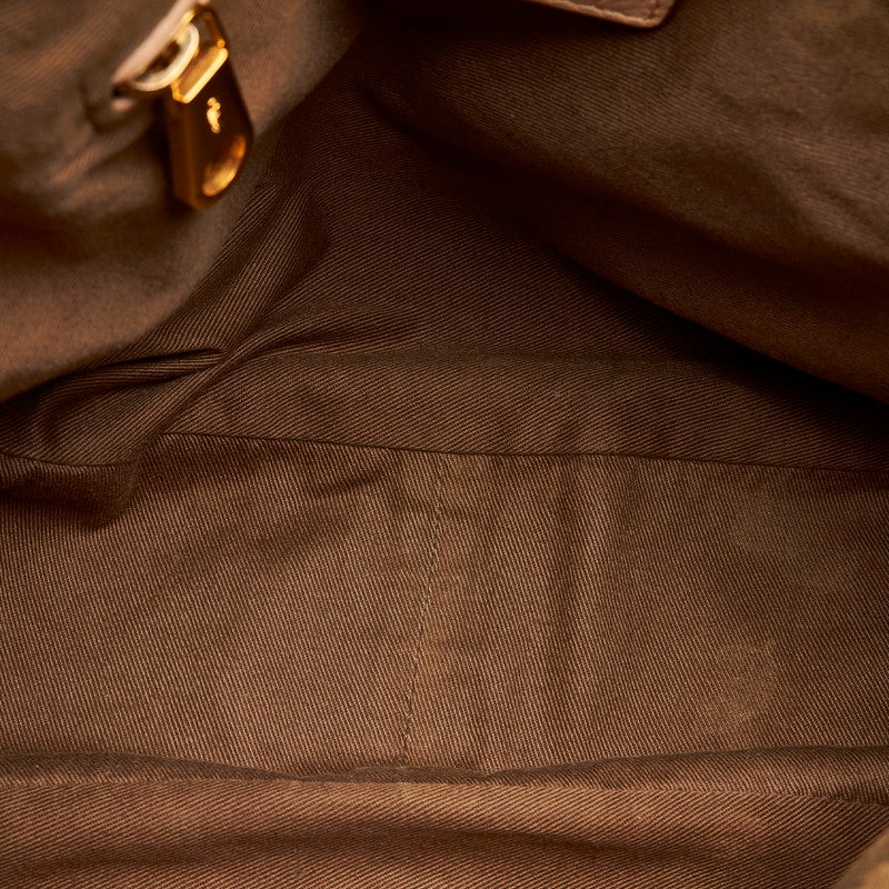 外側に若干の黒ズミ・汚れ、ハンドルに黒ズミ・ボンド染み・スレ、底部にフチ汚れ、金具にメッキハガレ・クスミ、内側にスレ、ショルダーに汚れ・ヨレはありますが、比較的キレイな商品です。 |