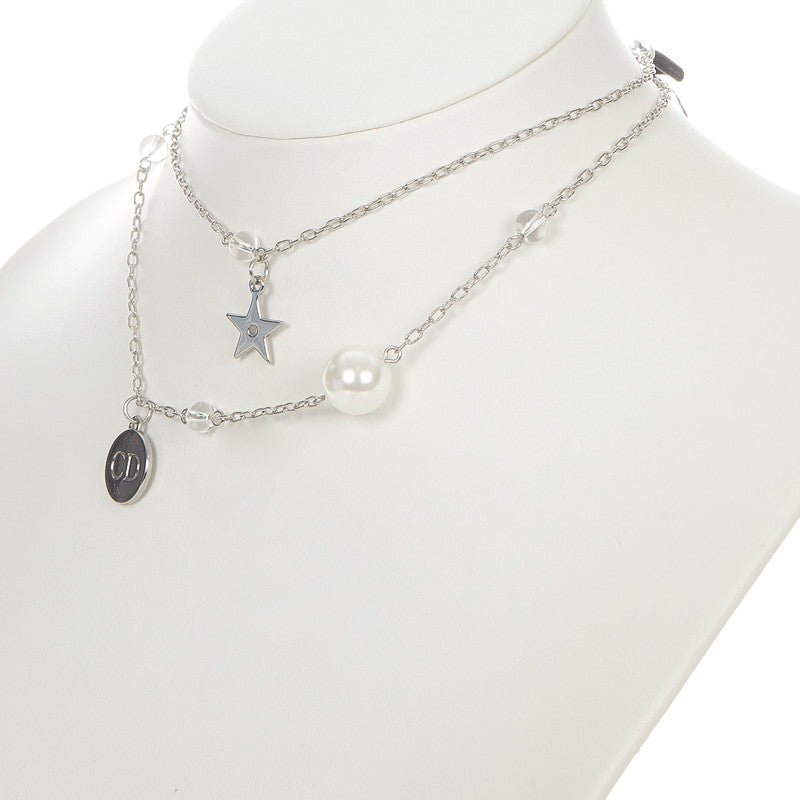 クリスチャンディオール シルバー メタル ナイロン パールスター リボン ネックレス レディース Christian Dior 【中古】