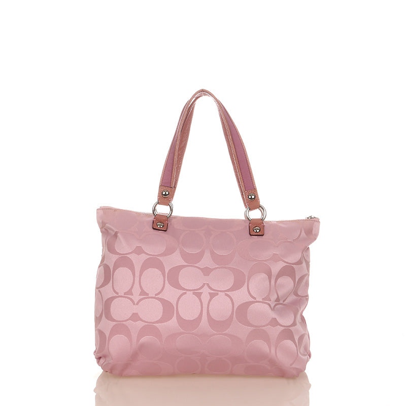コーチ シグネチャー POPPY 15316 ピンク キャンバス レザー ショルダーバッグ トートバッグ レディース COACH 【中古】