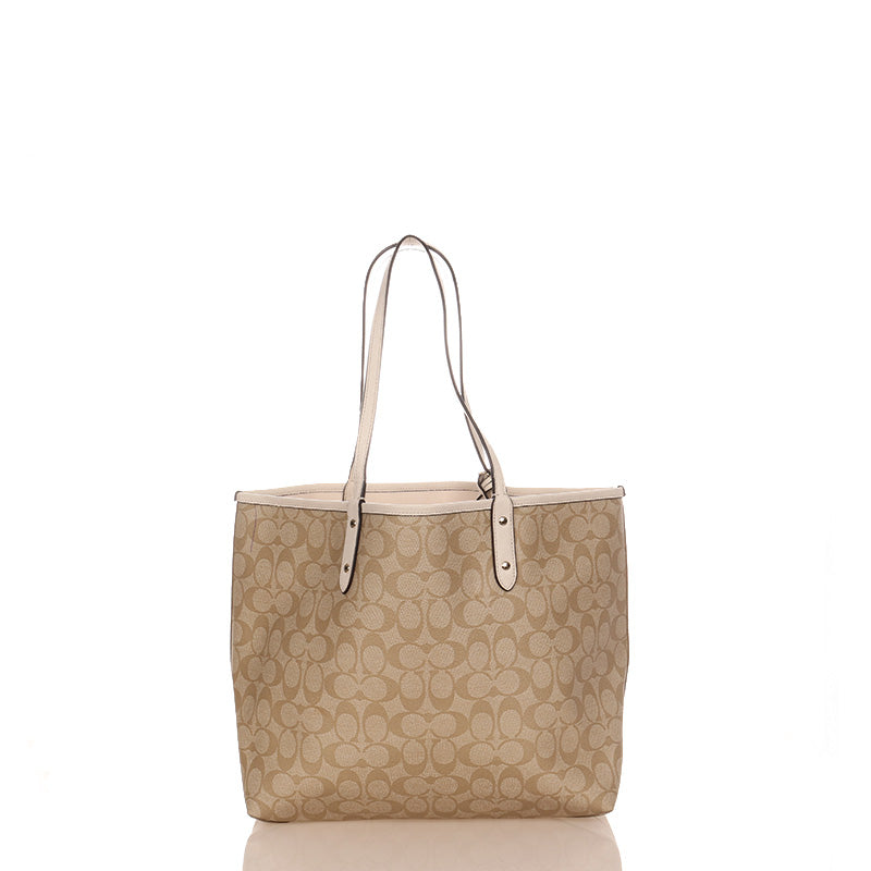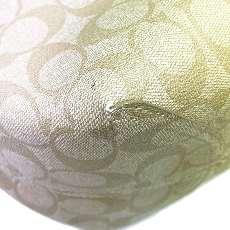 コーチ シグネチャー ベージュ ホワイト PVC レザー ショルダーバッグ トートバッグ レディース COACH 【中古】
