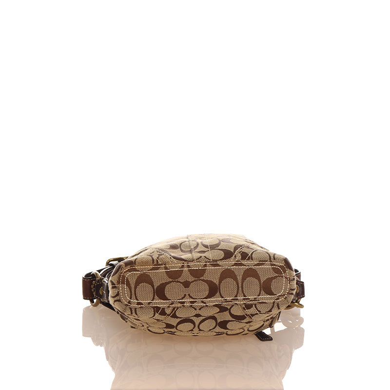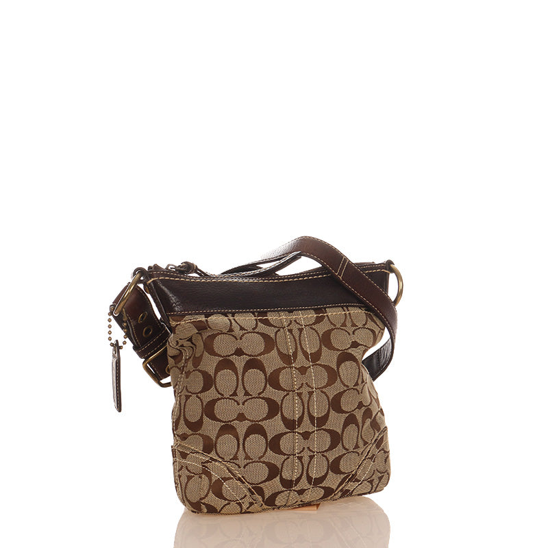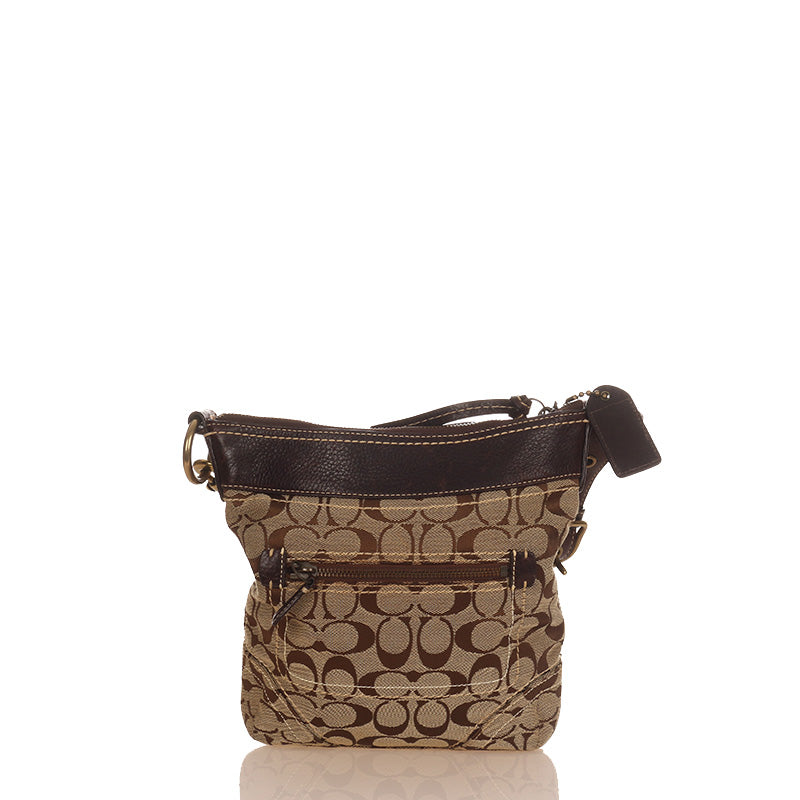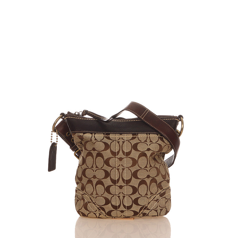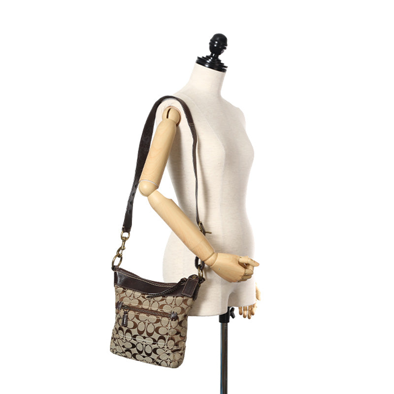 コーチ シグネチャー F10402 ブラウン ベージュ キャンバス レザー 斜め掛け ショルダーバッグ レディース COACH 【中古】