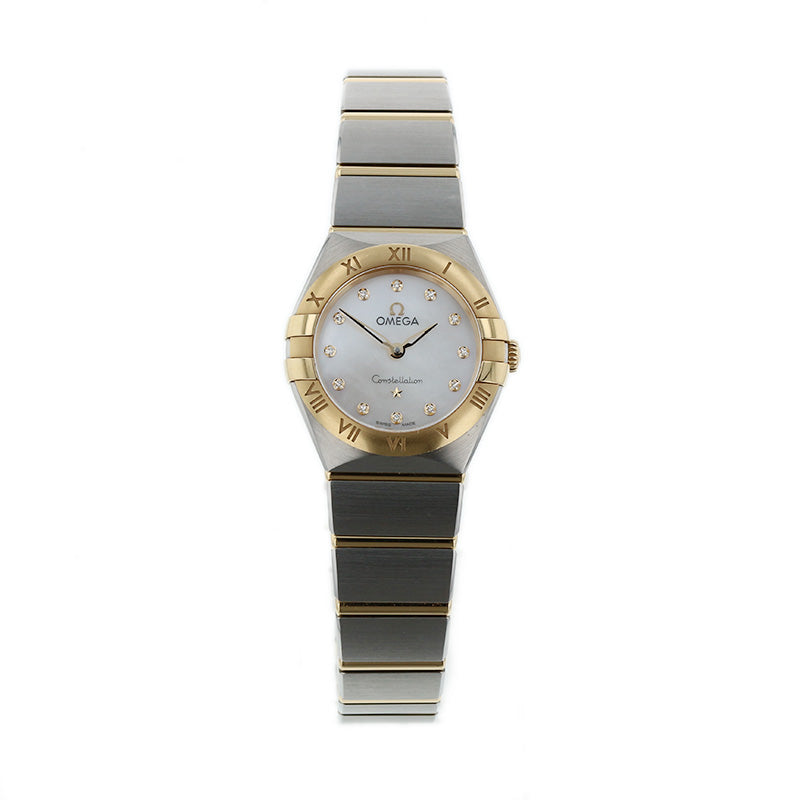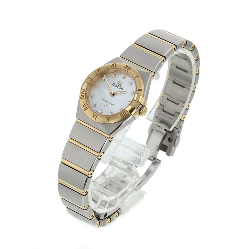 オメガ コンステレーション マンハッタン ブラッシュ 腕時計 131.20.25.60.55.001 クオーツ ホワイトシェル文字盤 ステンレススチール K18YG イエローゴールド ダイヤモンド レディース OMEGA 【中古】