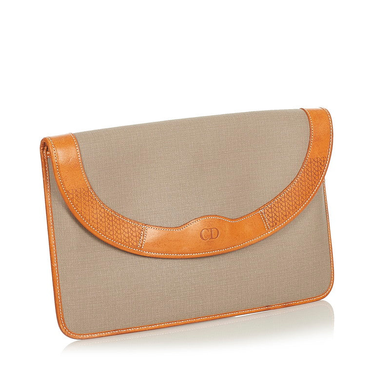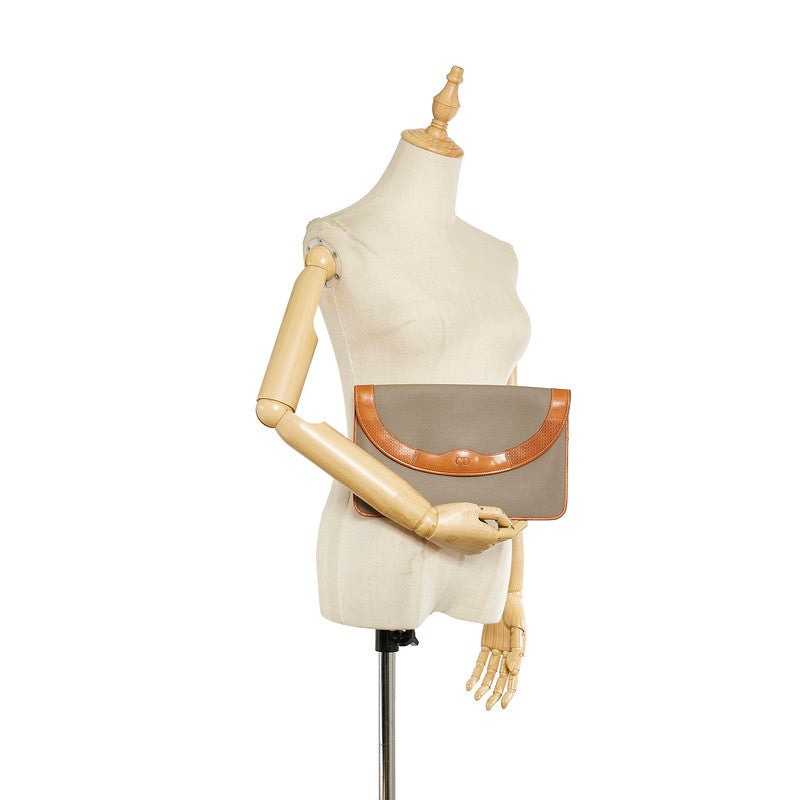 クリスチャンディオール CD ロゴ グレー ブラウン PVC レザー クラッチバッグ レディース Christian Dior 【中古】