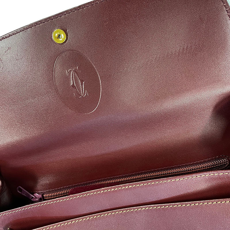 カルティエ マスト ボルドー カーフ 斜め掛け ショルダーバッグ レディース CARTIER 【中古】