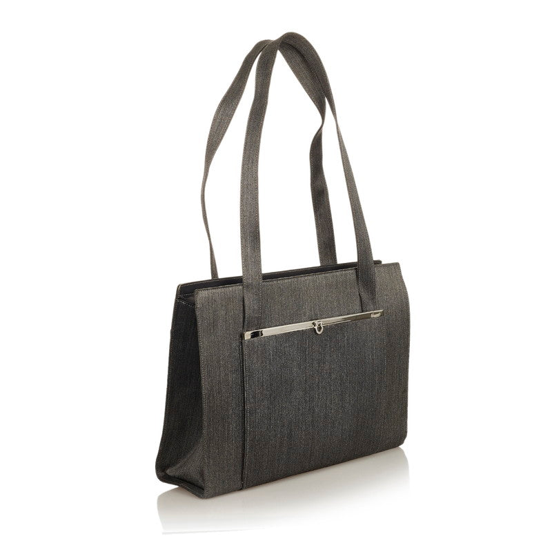 サルヴァトーレフェラガモ ガンチーニ EF 21 8820 ダークグレー キャンバス トートバッグ レディース Salvatore Ferragamo 【中古】