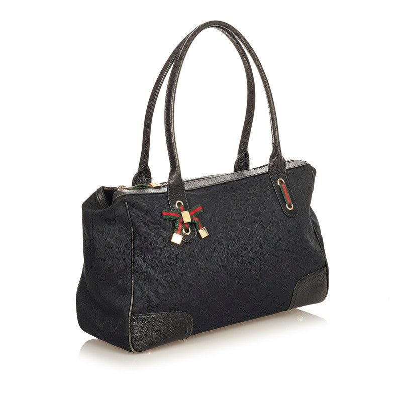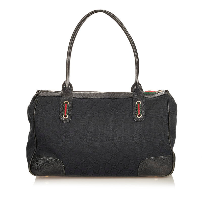 グッチ GGキャンバス プリンシー リボン 177052 ブラック キャンバス レザー 肩掛け ショルダーバッグ レディース GUCCI 【中古】