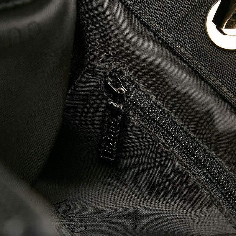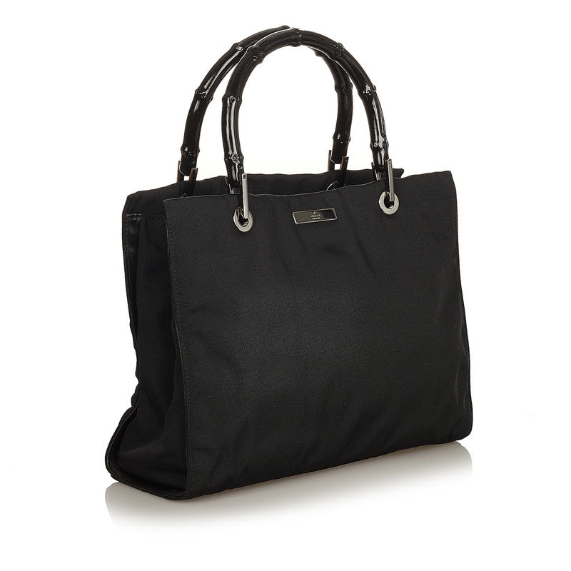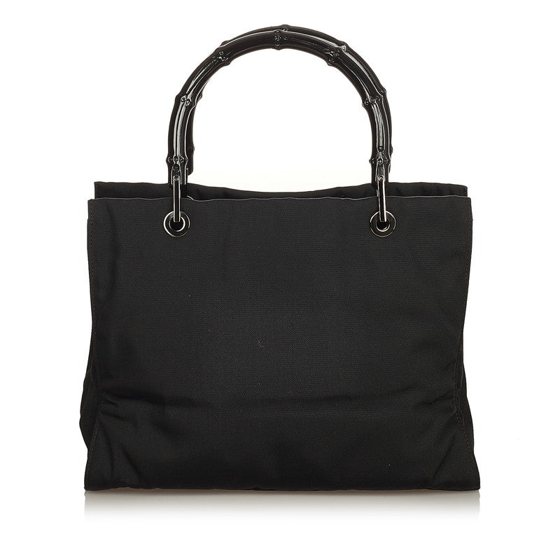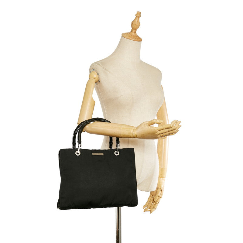 グッチ バンブー ロゴプレート 002 1016 ブラック キャンバス ハンドバッグ レディース GUCCI 【中古】