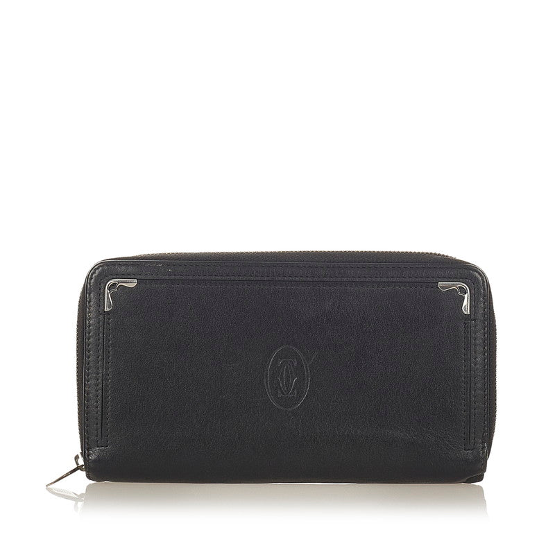 カルティエ マスト L3001490 ブラック カーフ ラウンドファスナー 長財布 メンズ CARTIER 【中古】
