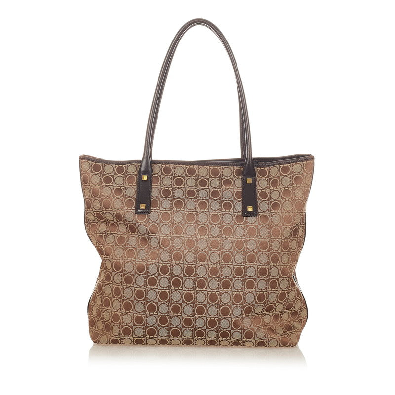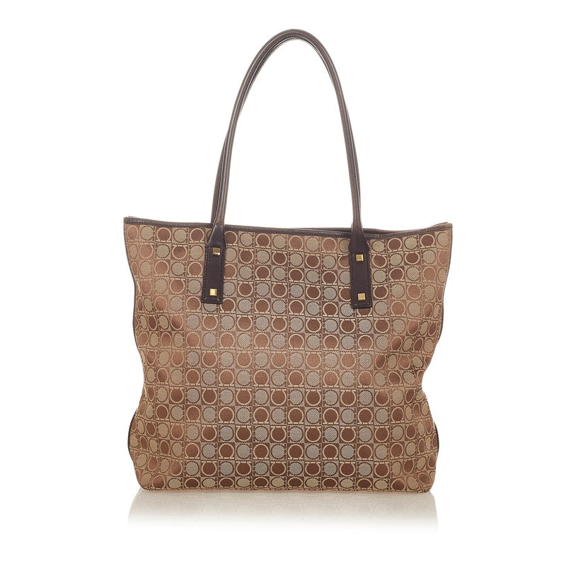 サルヴァトーレフェラガモ ガンチーニ BA 21 1802 ブラウン キャンバス ショルダーバッグ トートバッグ レディース Salvatore Ferragamo 【中古】