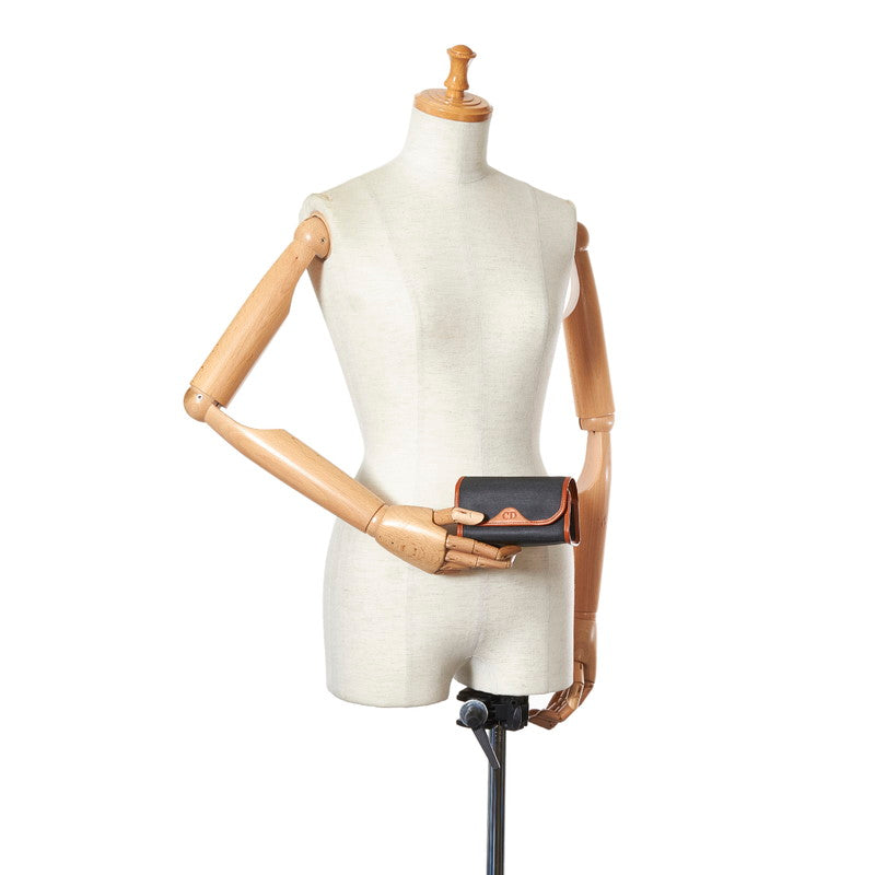 クリスチャンディオール CD ロゴ ブラック ライトブラウン キャンバス レザー ポーチ レディース Christian Dior 【中古】